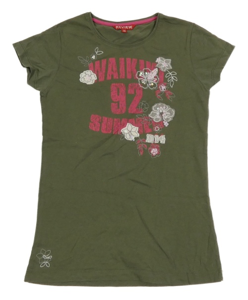 Khaki tričko s nápisem a květy Review