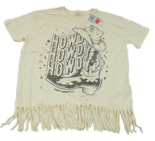 Nové - smetanové tričko s nápisy a třásněmi Primark