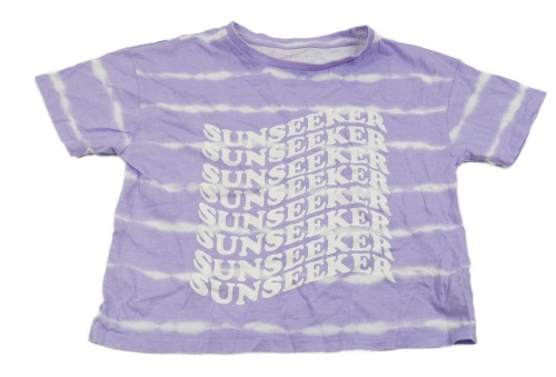 Lila-bílé pruhované crop tričko s nápisy Primark