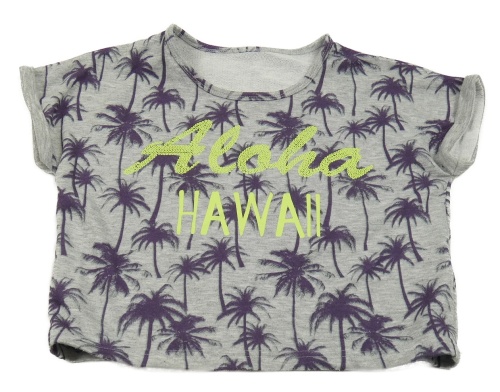 Šedo-fialové teplákové crop tričko s palmami a nápisem