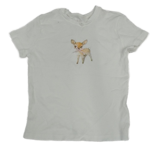 Bílé žebrované crop tričko se srnkou PRIMARK