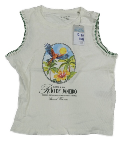Nové - bílý žebrovaný crop top s papouškem Primark