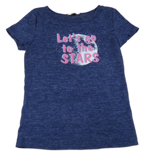 Tmavomodré melírované úpletové tričko s měsícem a nápisem
