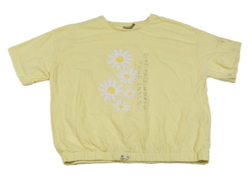 Žluté crop tričko s kytičkami a nápisem