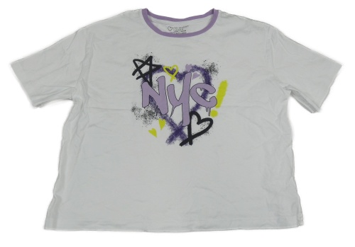 Bílo-fialové crop tričko s písmenky a srdíčky PRIMARK