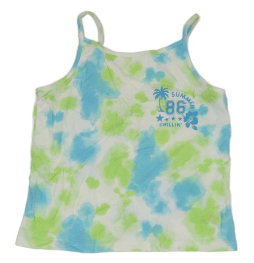 Modro-zeleno-bílý batikovaný top s palmou a nápisy F&F