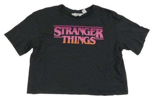 Antracitové crop tričko s nápisem - Stranger Things H&M