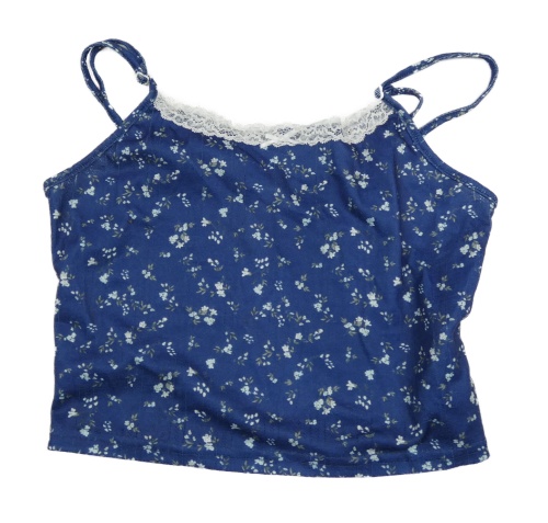 Tmavomodro-bílý květovaný crop top Shein