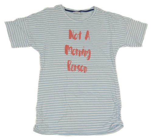 Bílo-světlemodré pruhované tričko s nápisy YIGGA