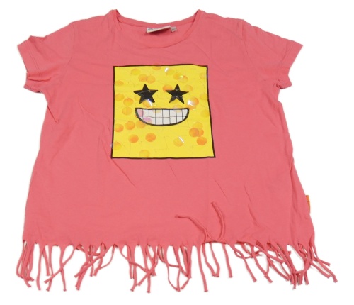 Růžové crop tričko se smajlíkem a třásněmi Emoji