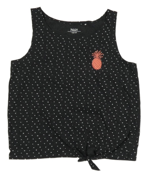 Černošedý melírovaný puntíkatý crop top s ananasem a uzlem YIGGA