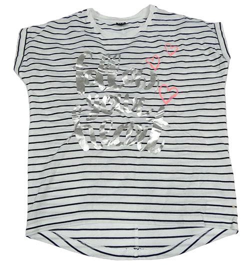 Bílo-černé pruhované tričko s nápisem a srdíčky Y.F.K.