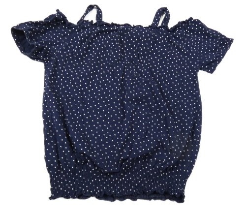 Tmavomodro-bílé puntíkaté tričko s volnými rameny YIGGA
