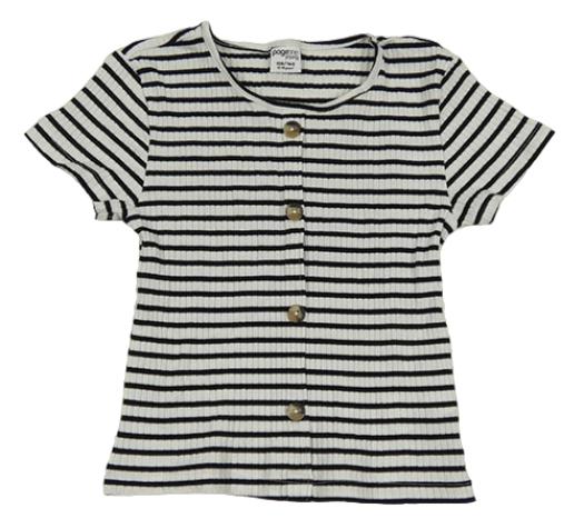 Bílo-černé pruhované žebrované crop tričko s knoflíky Page One Young