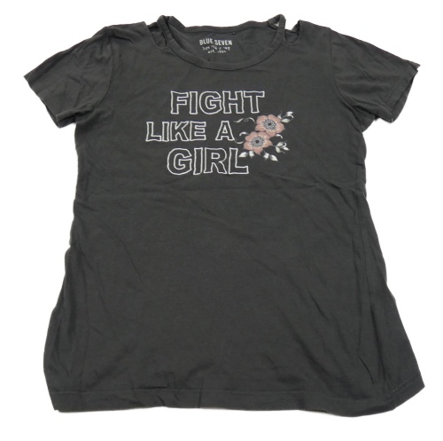 Tmavošedé tričko s nápisem a kytičkami Blue seven