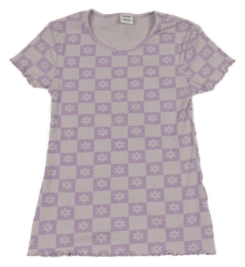 Světlefialovo-fialové kostkované žebrované tričko s květy Y.F.K. vel. 176