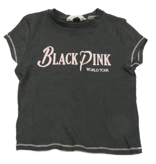 Tmavošedé žebrované crop tričko s růžovým nápisem H&M