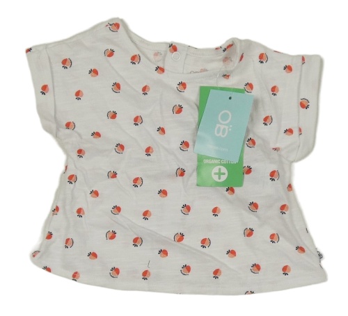 Nové - bílé melírované tričko s jahůdkami OBaïBi