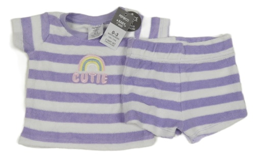 Nové - 2 set - fialovo-bílé pruhované froté tričko s duhou + kraťasy Pep&Co
