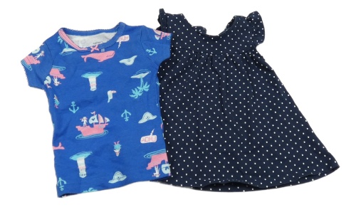 2 set - tmavomodrá puntíkatá tunika + modré tričko s obrázky