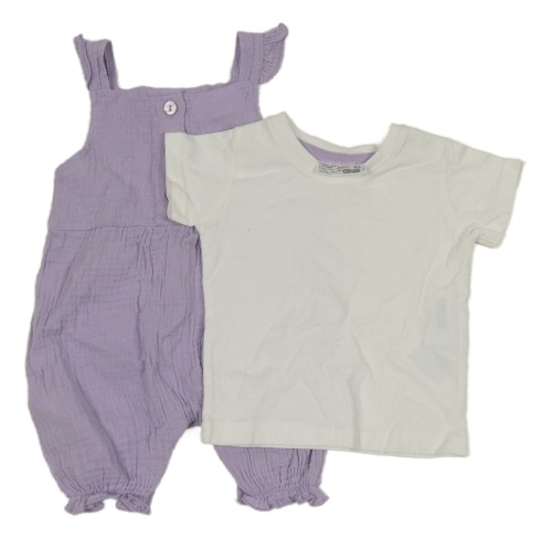 2set - Bílé tričko + lila mušelínový kalhotový overal Ergee