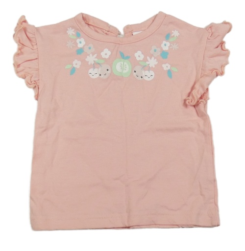 Broskvové tričko s jablíčkem a třešničkami a květy a volánky P'tit bisou