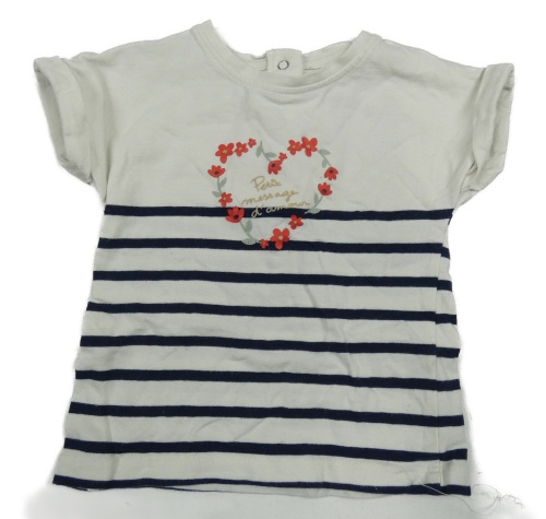 Béžovo-tmavomodré tričko se srdcem z květů a pruhy Orchestra