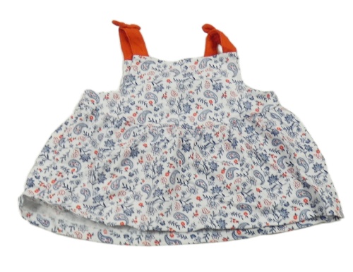 Bílo-tmavomodrý vzorovaný top s červenými ramínky
