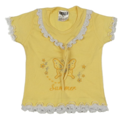 Žluto-bílé tričko s motýlkem a volánkem