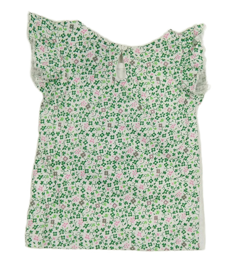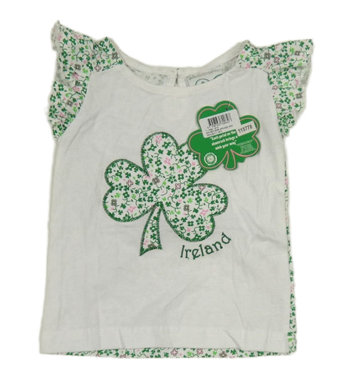 Nové - bílé tričko s trojlístkem a zeleno-růžovými květy a volánky Ireland