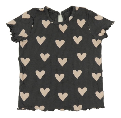 Tmavošedé žebrované tričko s pudrovými srdíčky George