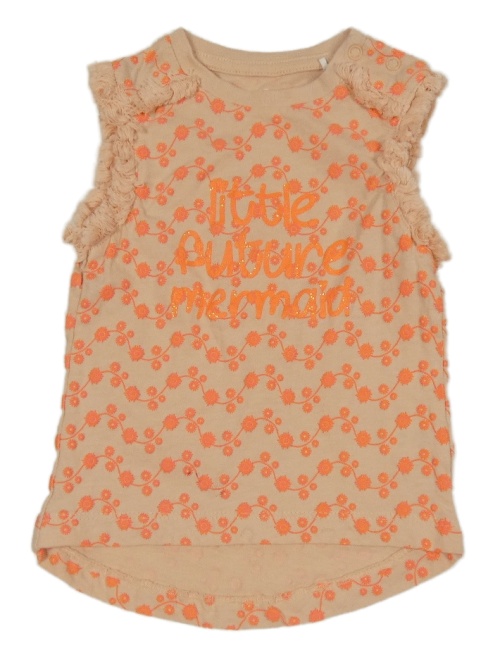 Oranžový kytičkovaný top s nápisem Topomini