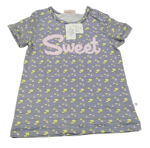 Tmavomodré pruhované tričko s kvítky a nápisem Liegelind