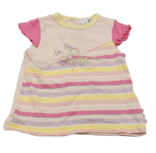 Světlerůžovo-žlutá pruhovaná šatová tunika s motýlkem