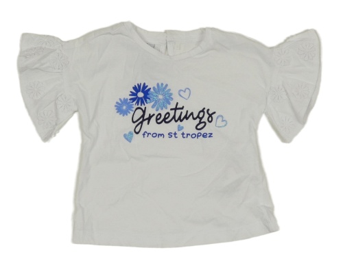 Bílé tričko s nápisy a srdíčky a květy PRIMIGI