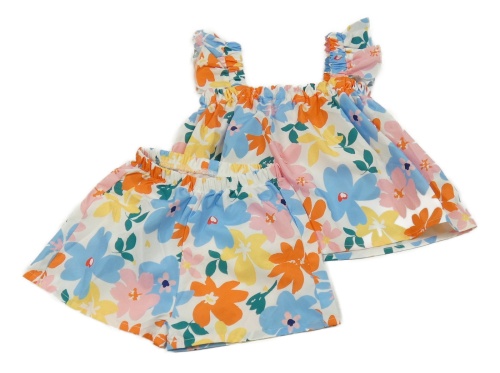 2set - Bílo-barevný květovaný top + kraťasy Shein