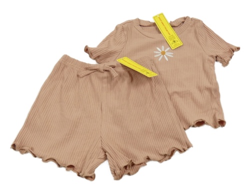 Nové - starorůžové žebrované tričko s květinou + kraťasy shein