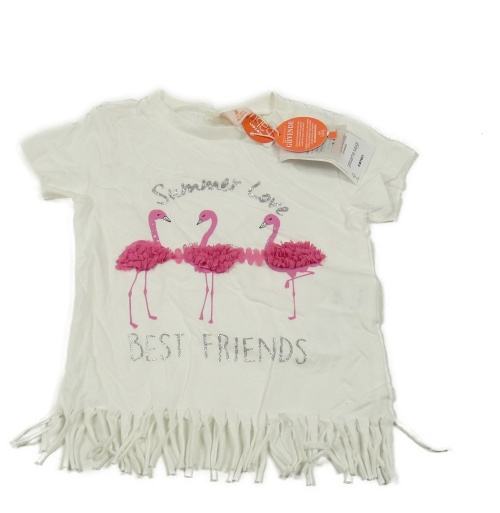 Nové - Bílé tričko s plameňáky a třásněmi