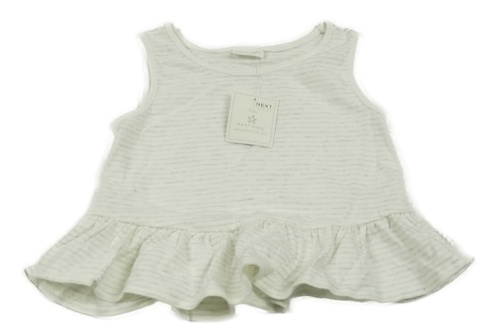 Nové - bílo-šedý pruhovaný top s volánkem Next