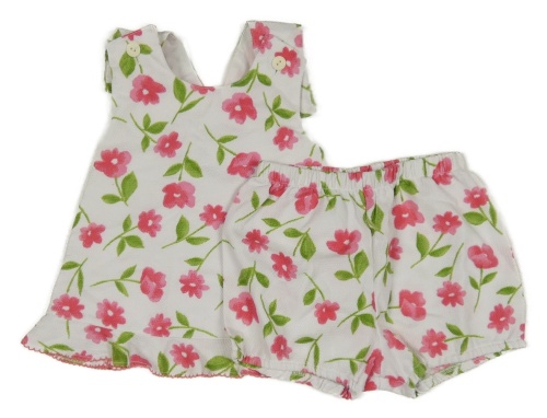 2set - Bílo-růžovo-zelený květovaný top + kraťasy