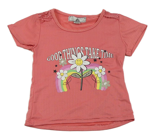 Jahodové sportovní tričko s květy a nápisem a krajkou