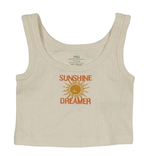 Smetanový žebrovaný crop top se sluncem M&S