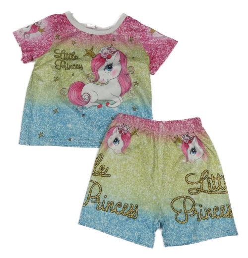 2 set - barevné vzorované tričko s jednorožcem + kraťasy