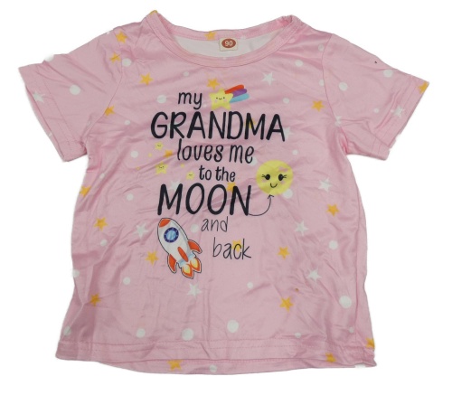 Světlerůžové tričko s potiskem a puntíky