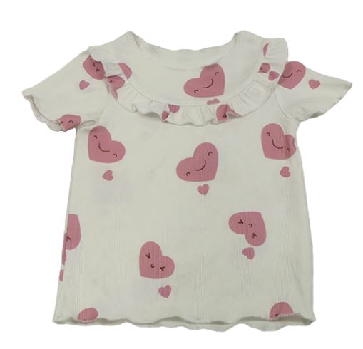 Bílé žebrované tričko s růžovými srdíčky a volánkem SHEIN