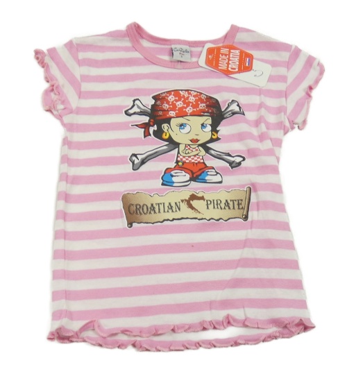 Nové - Růžovo-bílé pruhované tričko s pirátkou