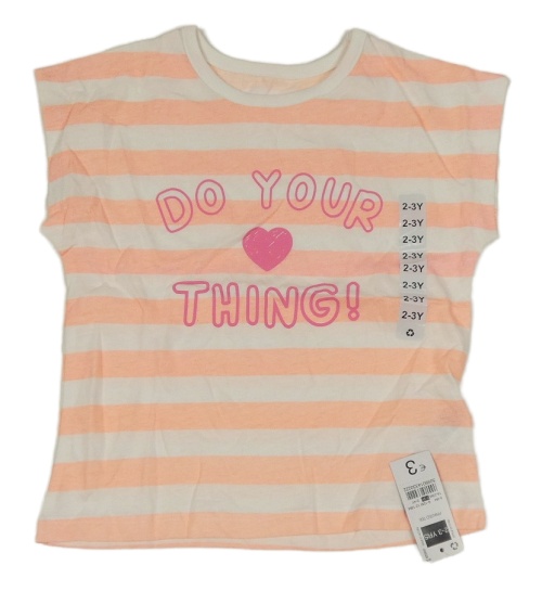 Nové - bílo-neonově korálové pruhované melírované tričko s nápisy a srdíčkem St. Bernard