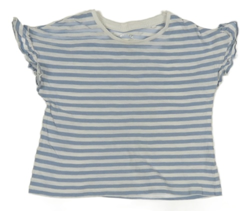 Světlemodro-bílé pruhované tričko s volánky TU