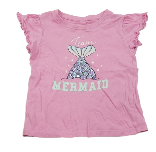 Růžové tričko s ploutví s flitry a nápisy a volánky