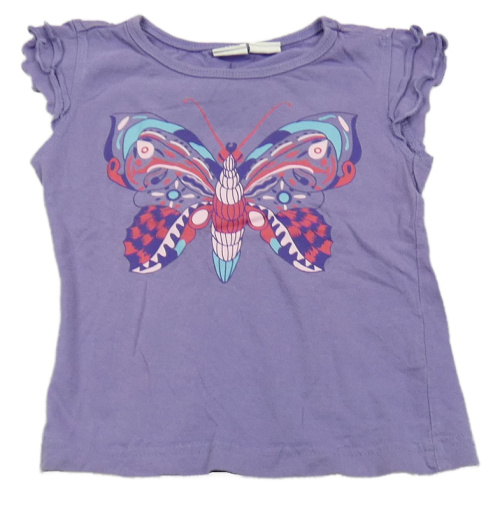 Fialové tričko s motýlem a volánky